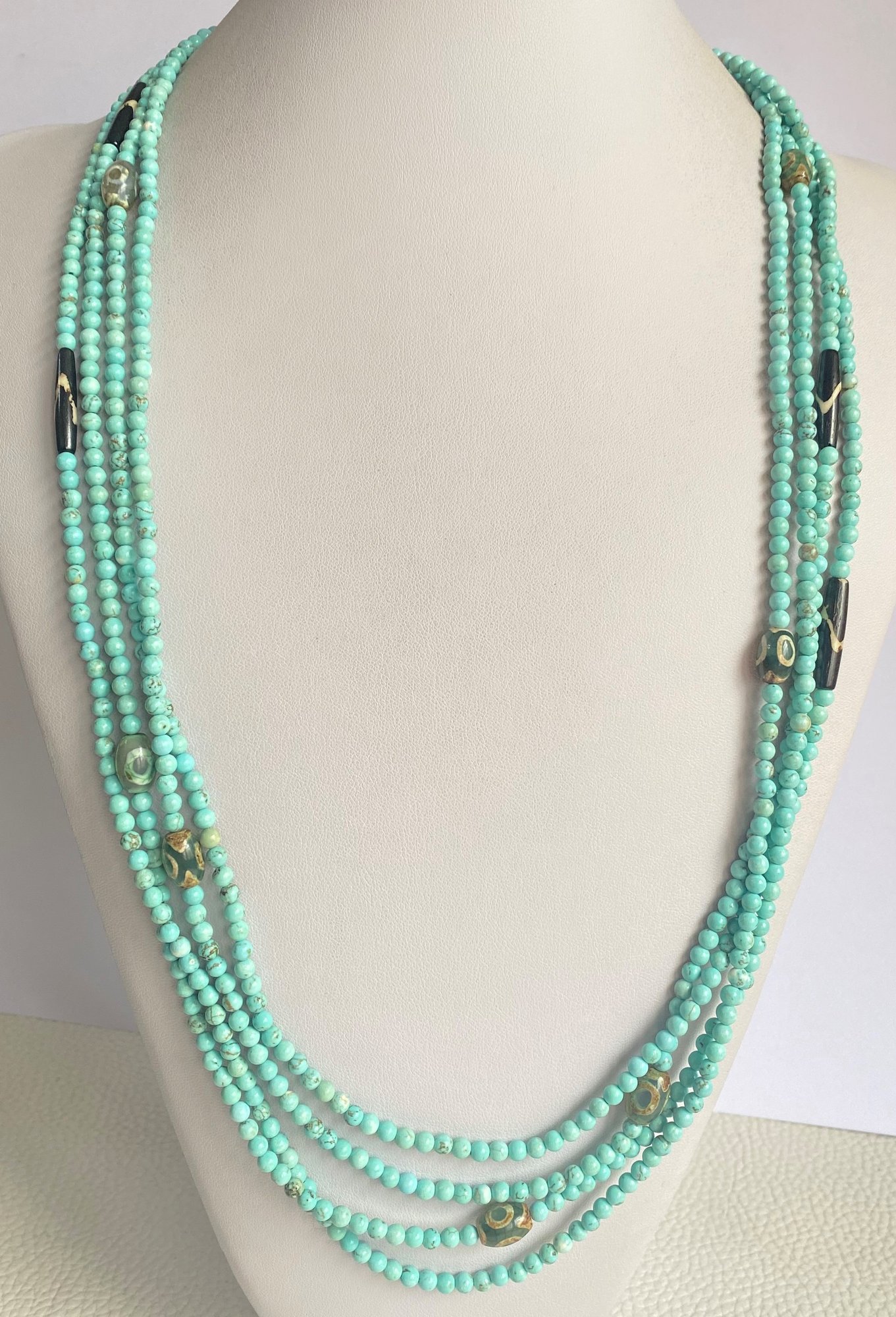 Aquamarine necklace with Greek crosses (protection & balance) – hematite – 925 silver brooch